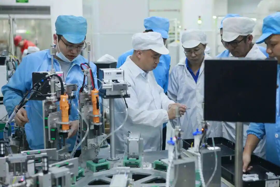 仪式的最后,全体参加人员齐聚设备旁,在镜头前留下了珍贵的合影。照片中,大家脸上洋溢着自豪的笑容,这一张合影不仅定格了双晶体自动锁附设备投产的重要时刻,更记录了六禾人携手推动创新的坚定决心。